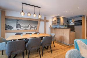 El amplio apartamento dispone de cuatro dormitorios y cinco baños equipados con albornoces. La zona de estar cuenta con suelos de parquet, paredes insonorizadas y una chimenea. Los huéspedes pueden disfrutar de vistas a la montaña desde el balcón o la terraza. La cocina está completamente equipada e incluye placas, nevera, lavavajillas, tostadora, hervidor eléctrico y utensilios para preparar las comidas con comodidad. Para comer al aire libre hay una zona exterior con barbacoa.